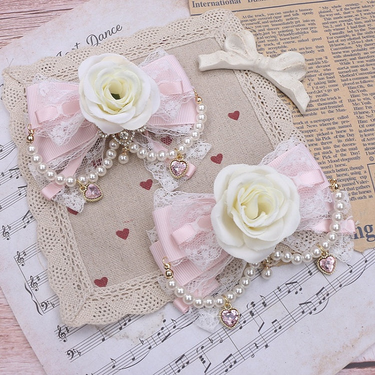 Jirai Kei 6 Color Options Bowknot Floral Pearl Chain Hairclip