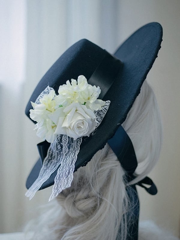 Red/Black/White Lace Bowknot Decorated Floral Hairclip
