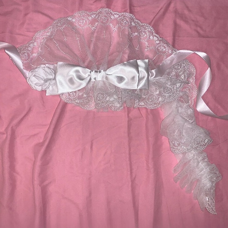 Floral Design Big Hairband White/Black Bow Trim Lace