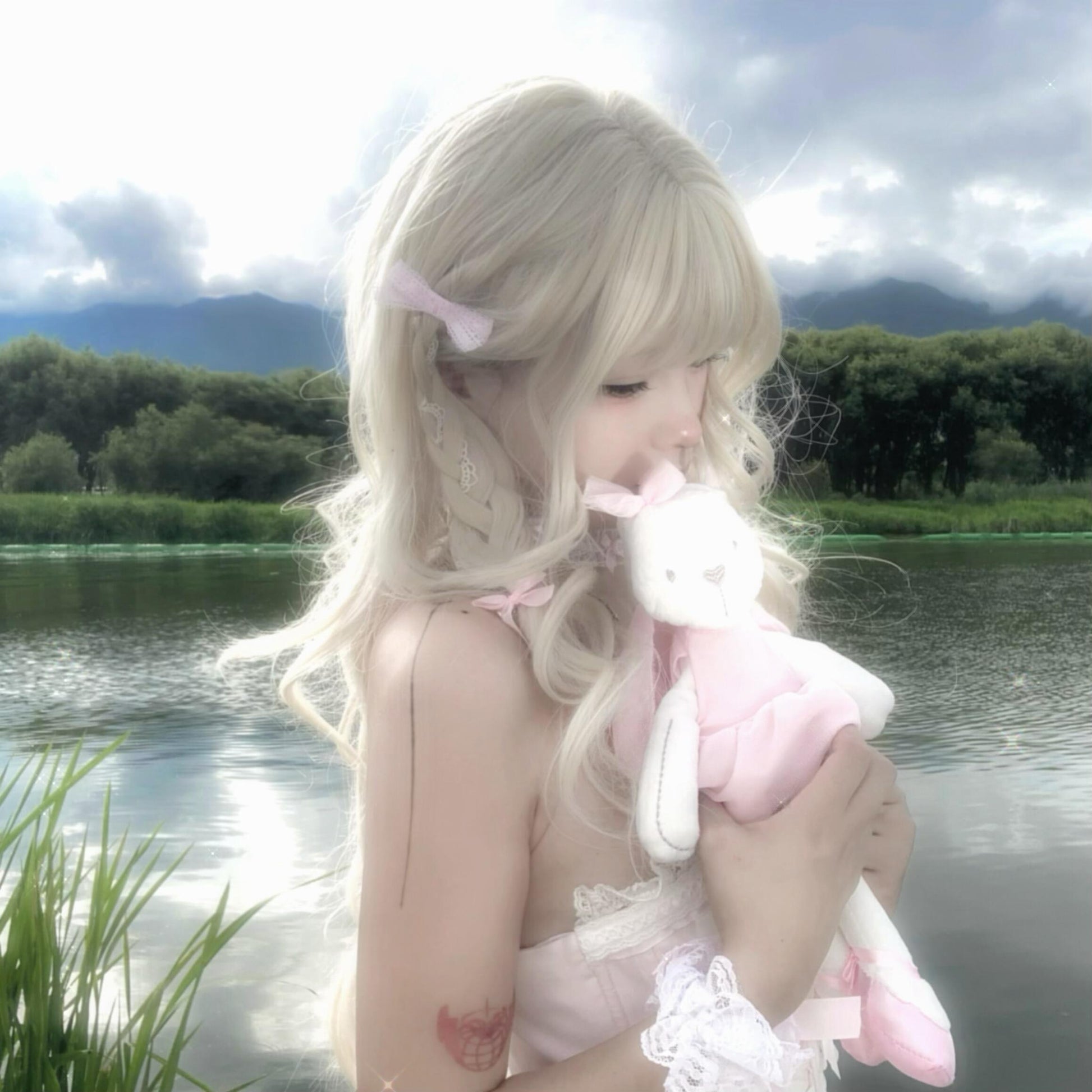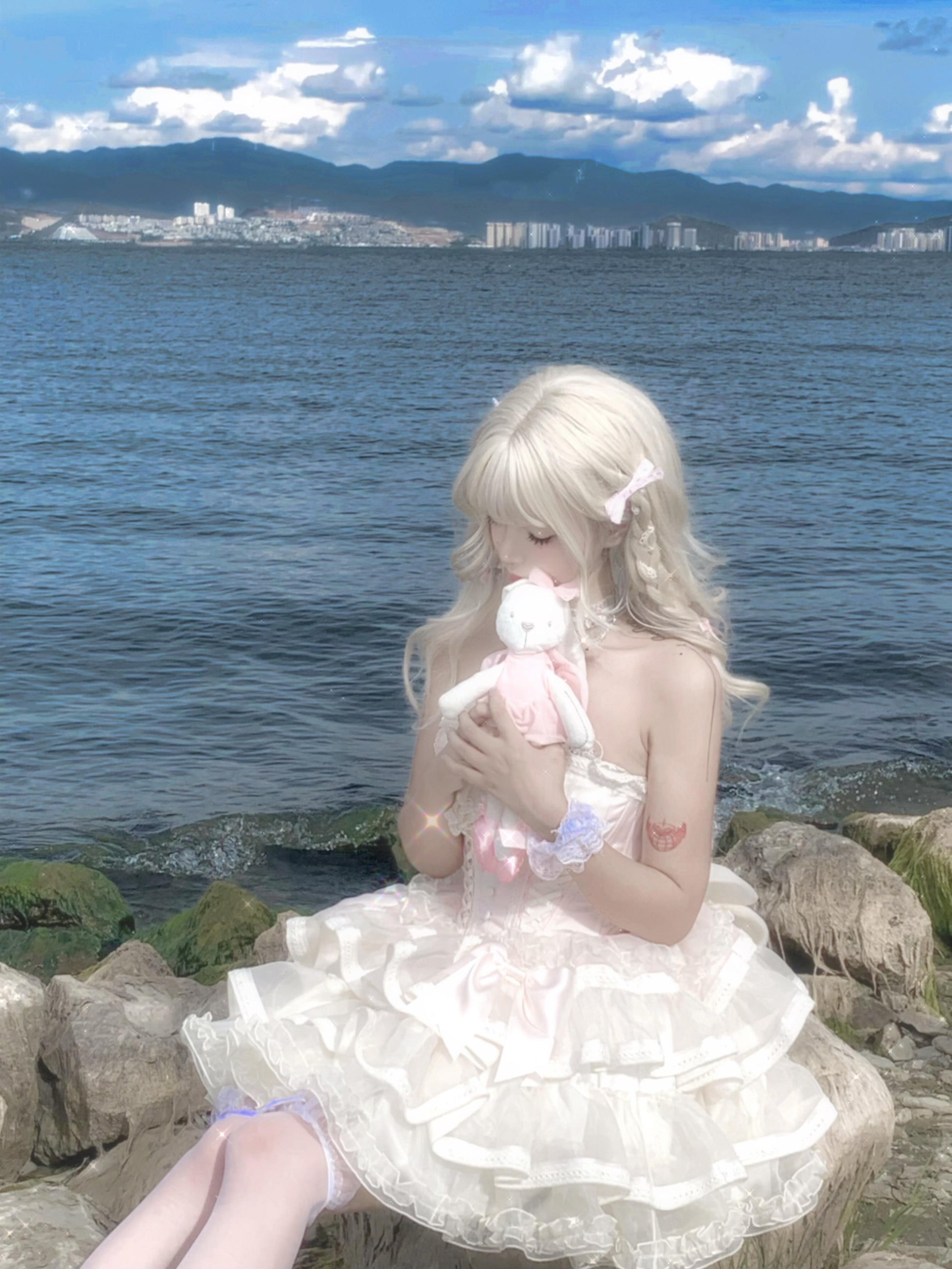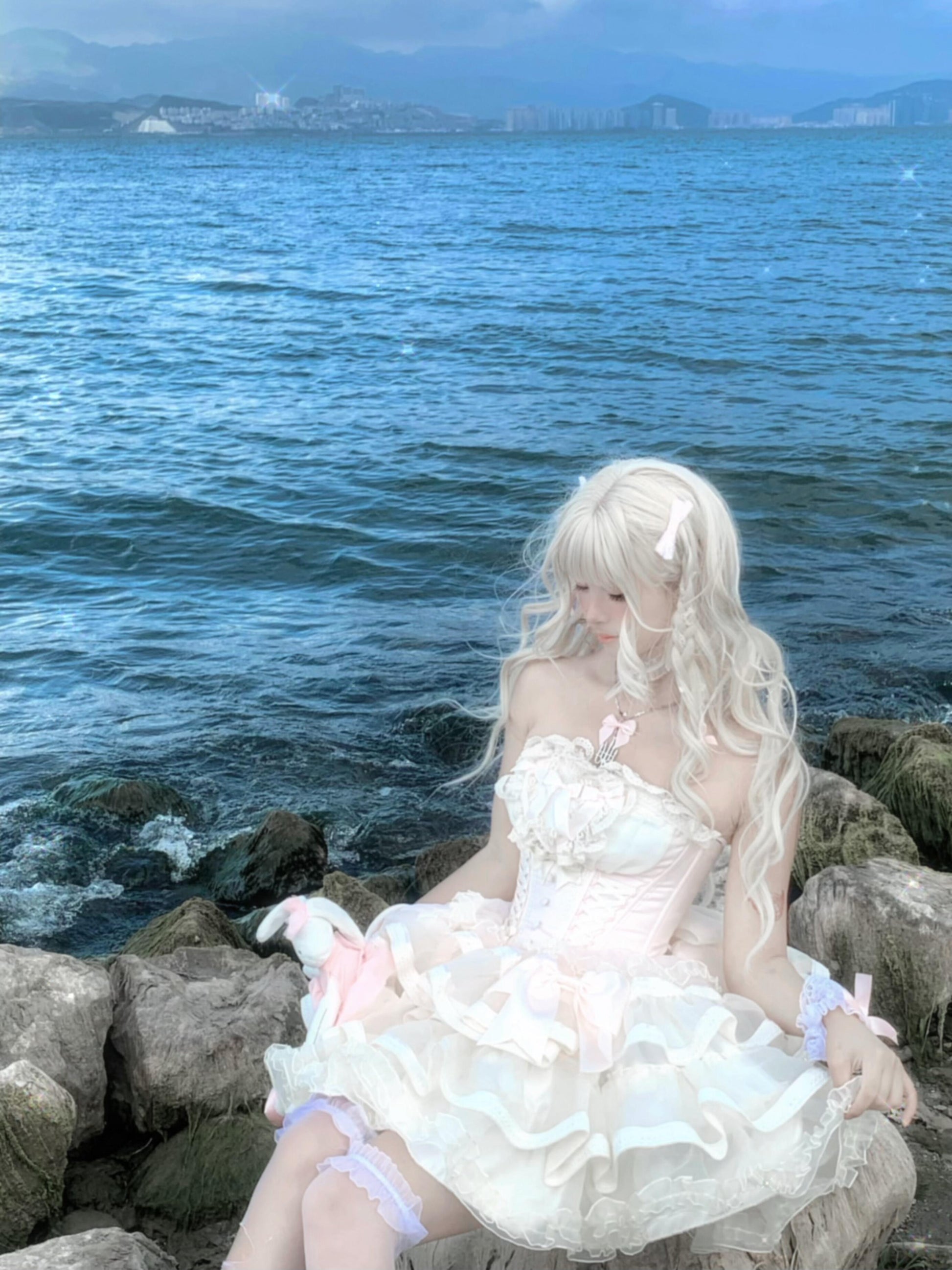 White and Pink Lolita Bonnet Choker