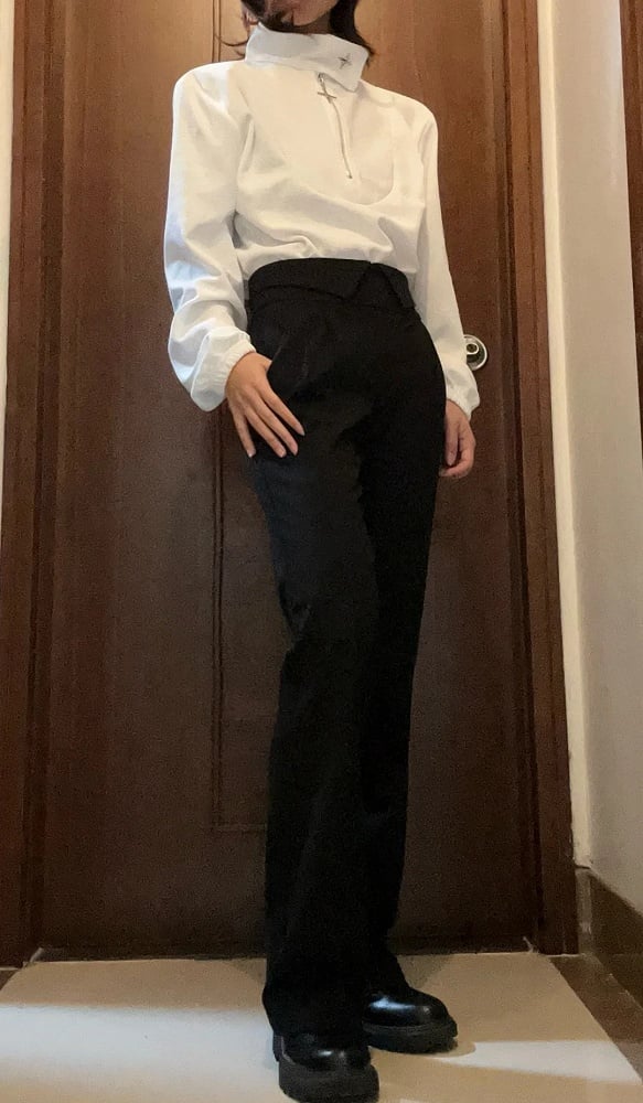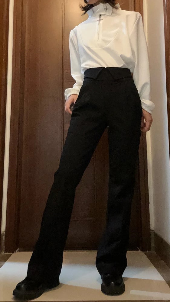 Foldover High Straight-leg Black Lolita Ouji Pants Waist