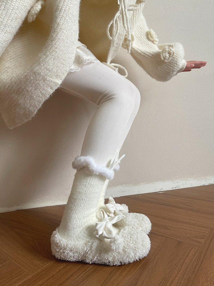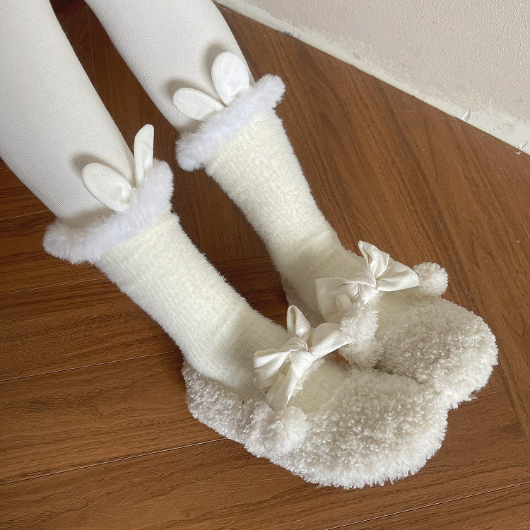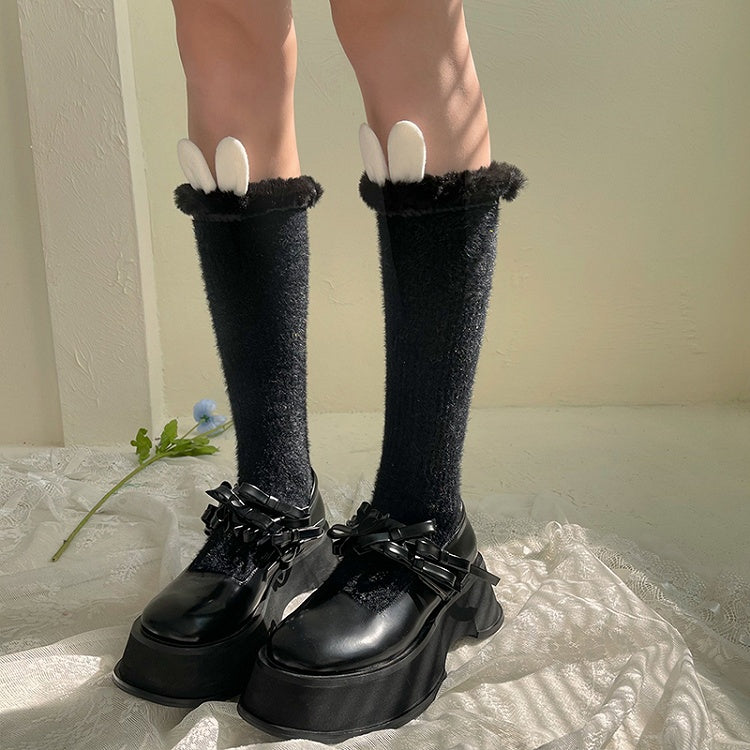6 Colors Lolita Furry Trim Calf Socks with Bunny Ear Decorations