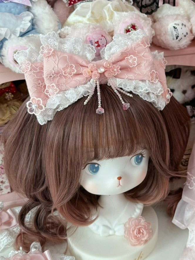 Gorgeous Version Pink Beaded Charm Floral Design Lace Trim Bowknot KC