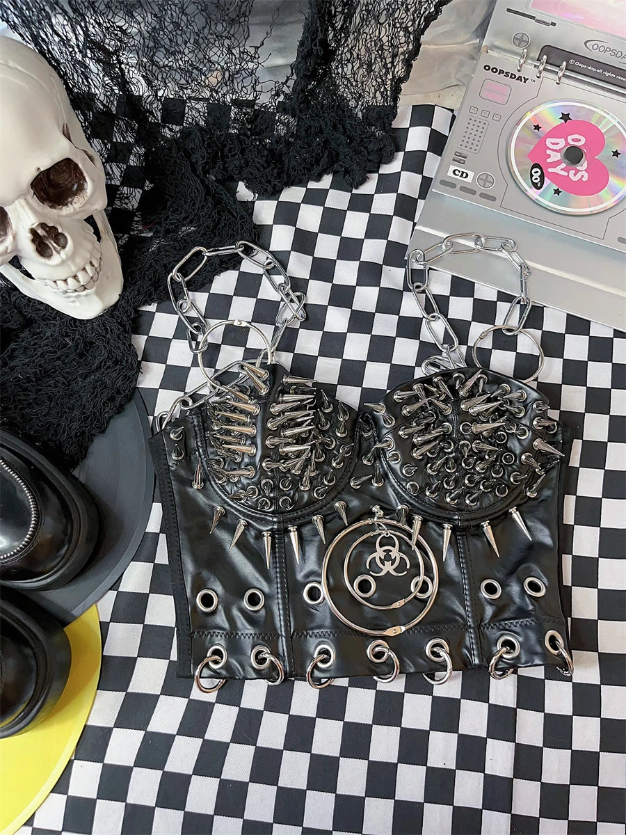 Gothic Black PU Leather Corset Top