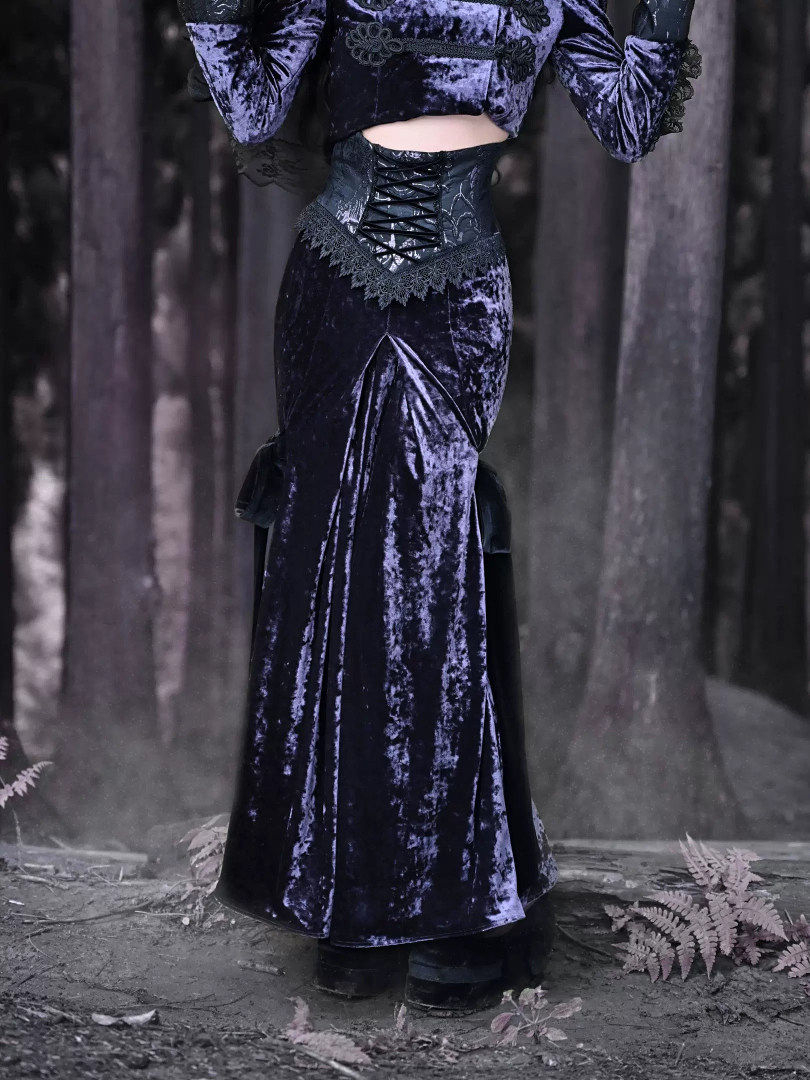 Gothic Long Skirt Ribbon Luna Velvet Slim