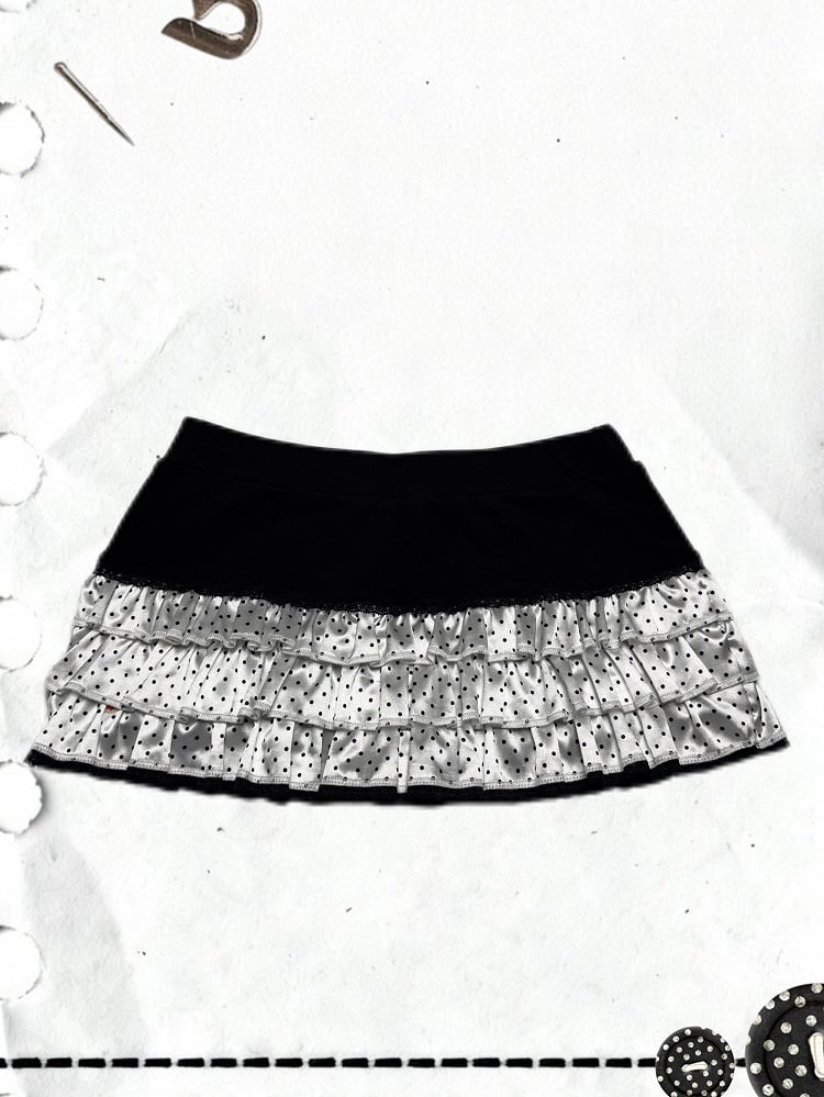 Black & White Gothic Skirt - Polka Dot Pattern with Tiered Ruffles