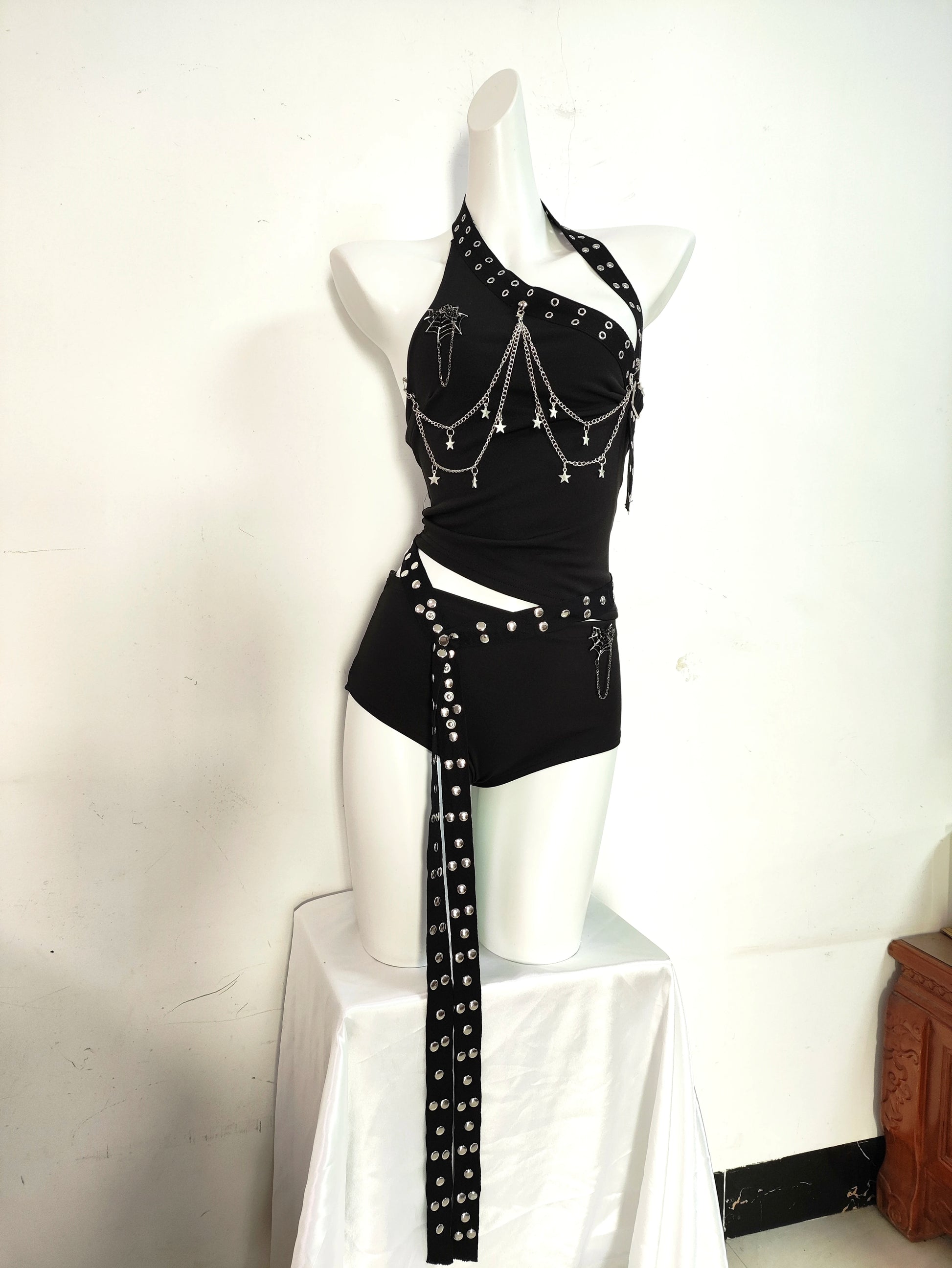 Gothic Punk Double-Sided Rivet Long Belt Outfit
