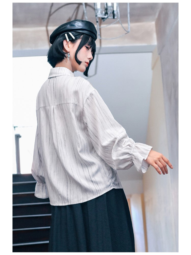 Gothic White Asymmetrical Cheongsam Blouse with Jellyfish Embroidery & Shoulder Ribbon Accents