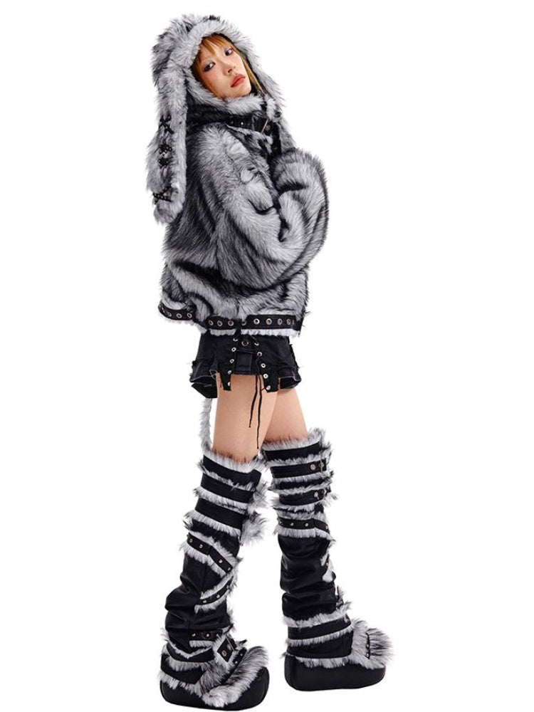 This adorable hat is perfect for keeping your head warm and adding a touch of cuteness to your outfit. The gray bunny ears add a playful flair and are sure to make heads turn. Stay cozy and cute with this fluffy hat.