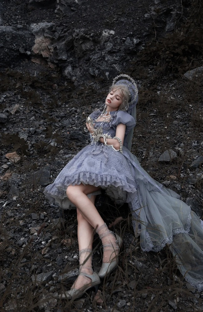 Dress up in this adorable Gray Dragon Bone Embroidery High-low Skirt Dress! Its gothic lolita style, cathedral embroidery overlay and high-low skirt add unique charm. Stand out in any occasion and leave an impression with this stunning dress!