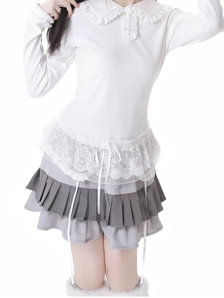 This skirt features delicate lace trim and a tiered design, adding a touch of sweetness to your outfit. Its thigh length cut is perfect for showcasing your legs, making you look lovely and chic.