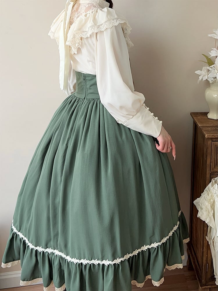 Green Boned High Waist Elegant Classic Lolita Skirt with Lace Trim