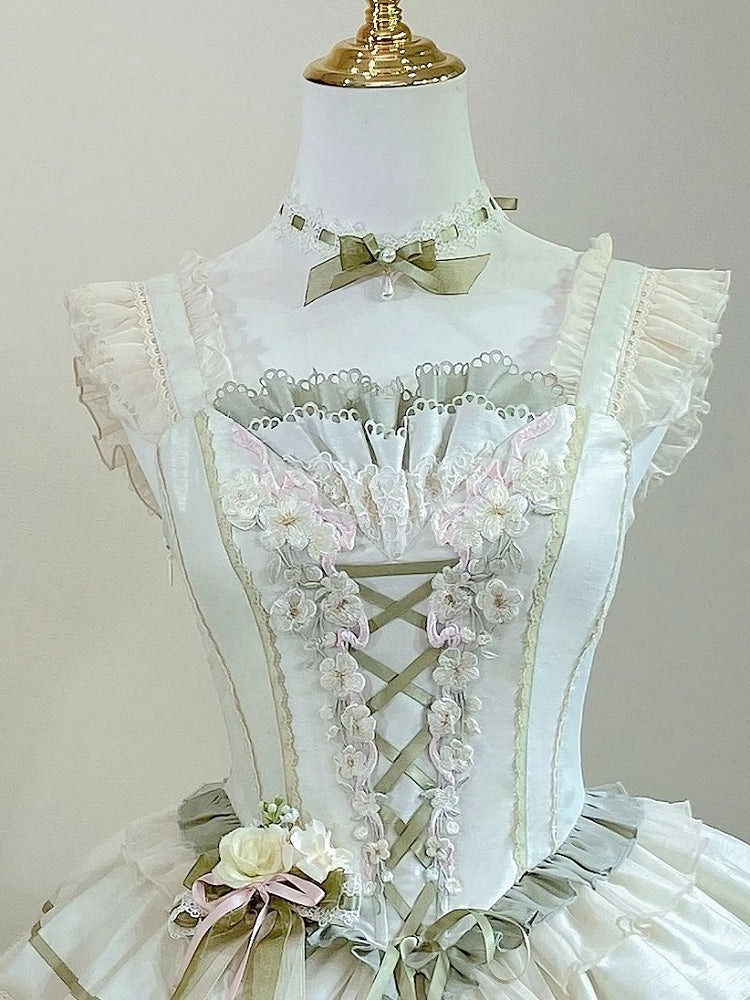 Blue and White Old School Lolita Fashion Dress Bowknot Detais JSK Set