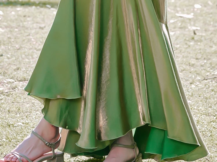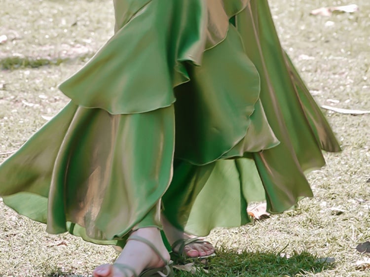 Green Floral Mermaid Skirt Flounce Hem Cami Dress