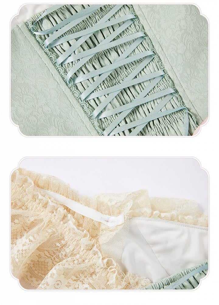 Green Jacquard Boned Bodice Pink Carousel Pattern Skirt Lolita Dress with Big Bow Train