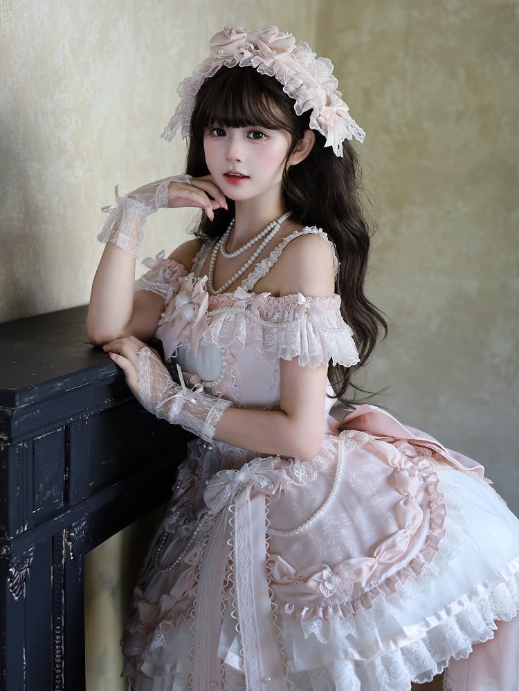 Pink and White Old School Lolita Fashion Dress Bowknot Detais Lolita JSK Set