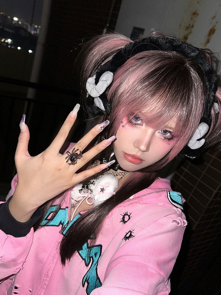 Grim Muffs Gothic Plush Clearance-Black and White Reaper Ear