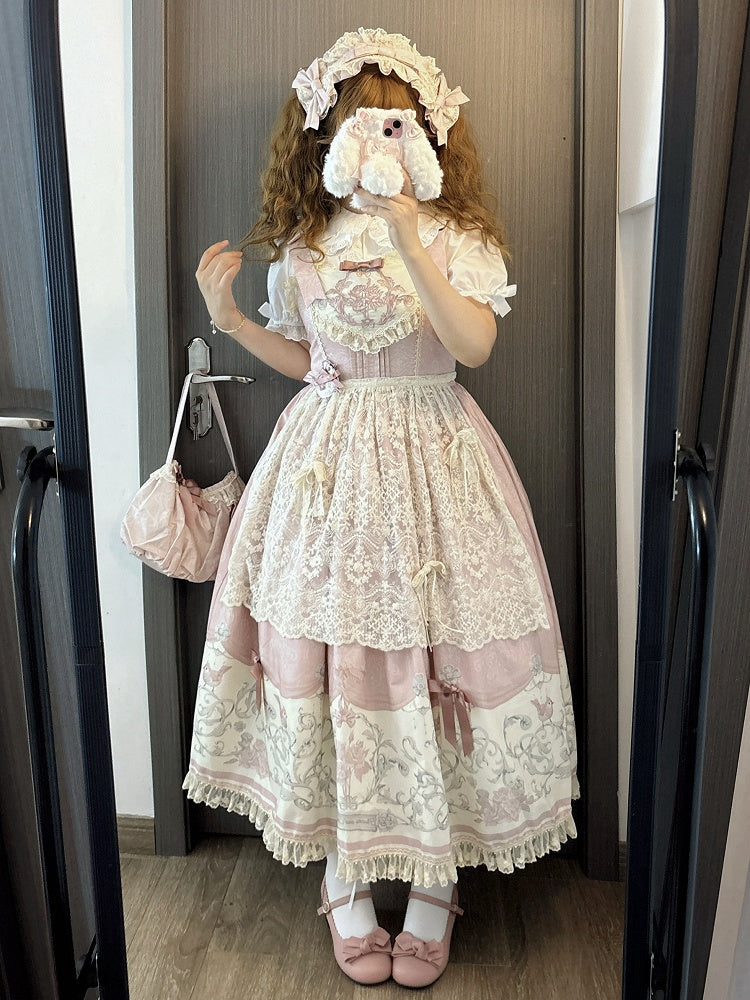Pink and White Old School Lolita Fashion Dress Bowknot Detais Lolita JSK Set