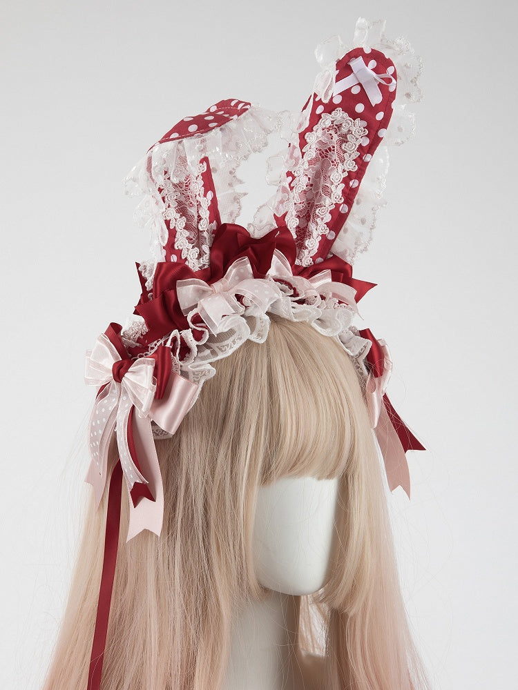 Hairband Set Ear Pastel Red + Bunny Removable Bundle 2-Piece Collection