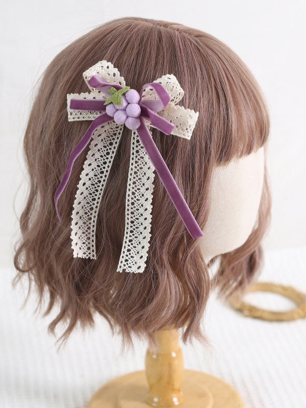 Sweet Lolita Cotton - thread Bowknot Lace Hairclip With Grape Decoration