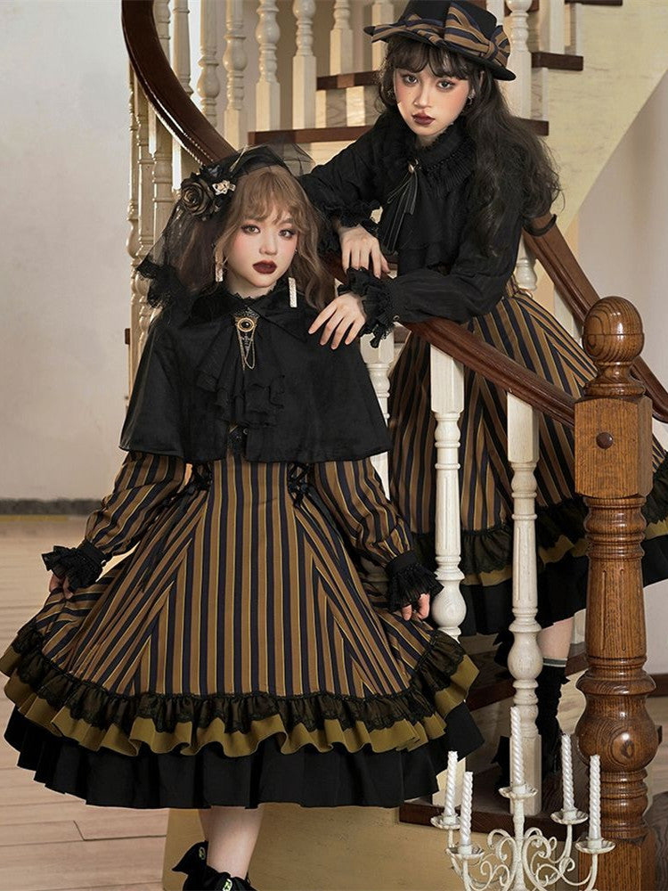 Black and White Old School Lolita Fashion Dress Bowknot Lolita JSK Set