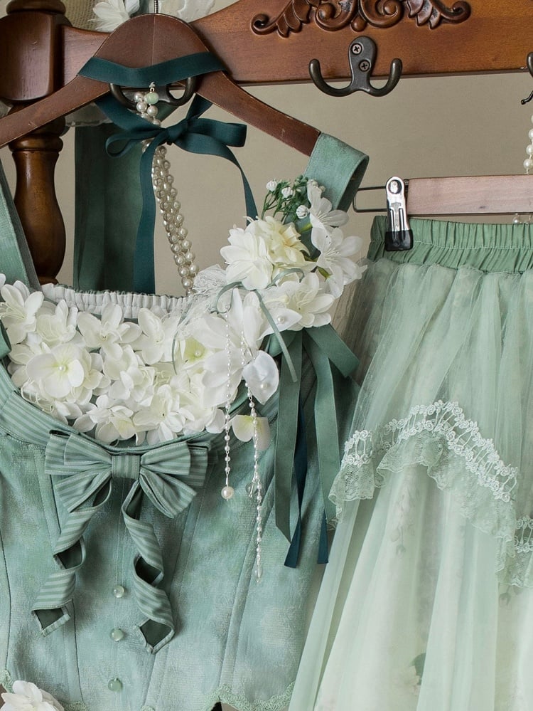 Blue and White Old School Lolita Fashion Dress Bowknot Detais JSK Set
