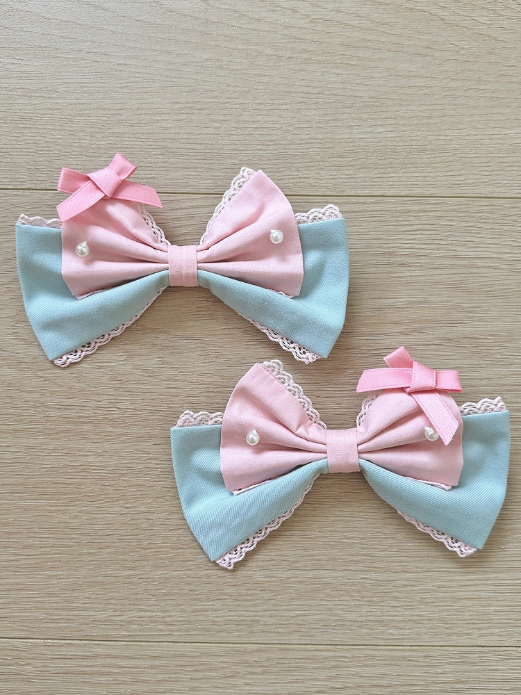White&Blue / Green&Pink / Yellow&Pink Bowknot Hairclip