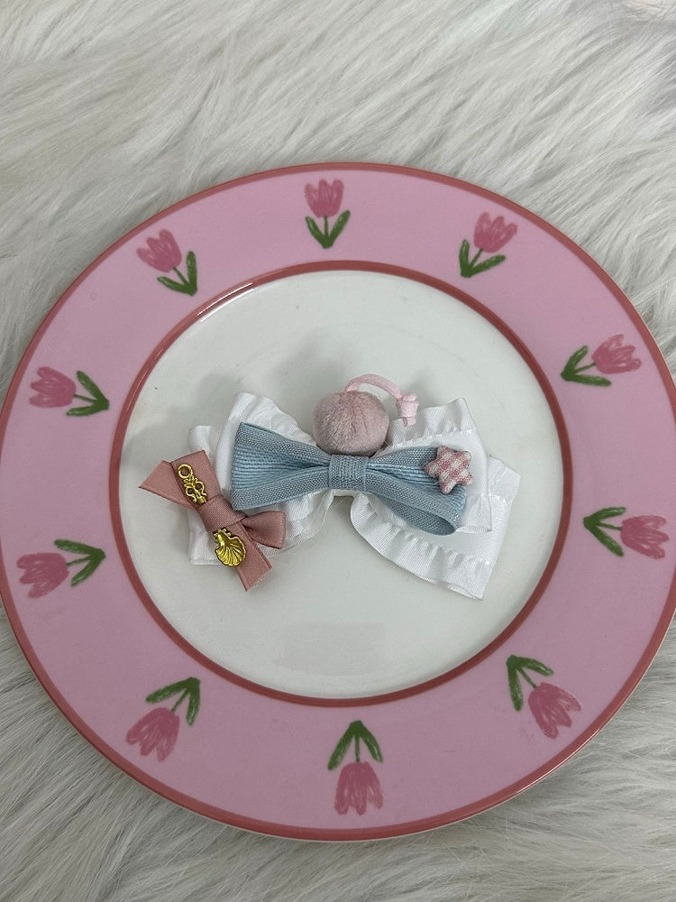 Blue/Brown Sweet Lolita Bow Hairclips with Golden Charm