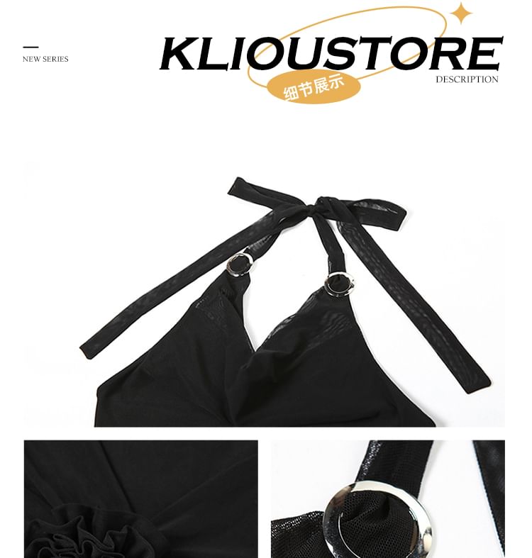 Halter Cowl Neck Plain Ruffle Asymmetrical Sheath Dress