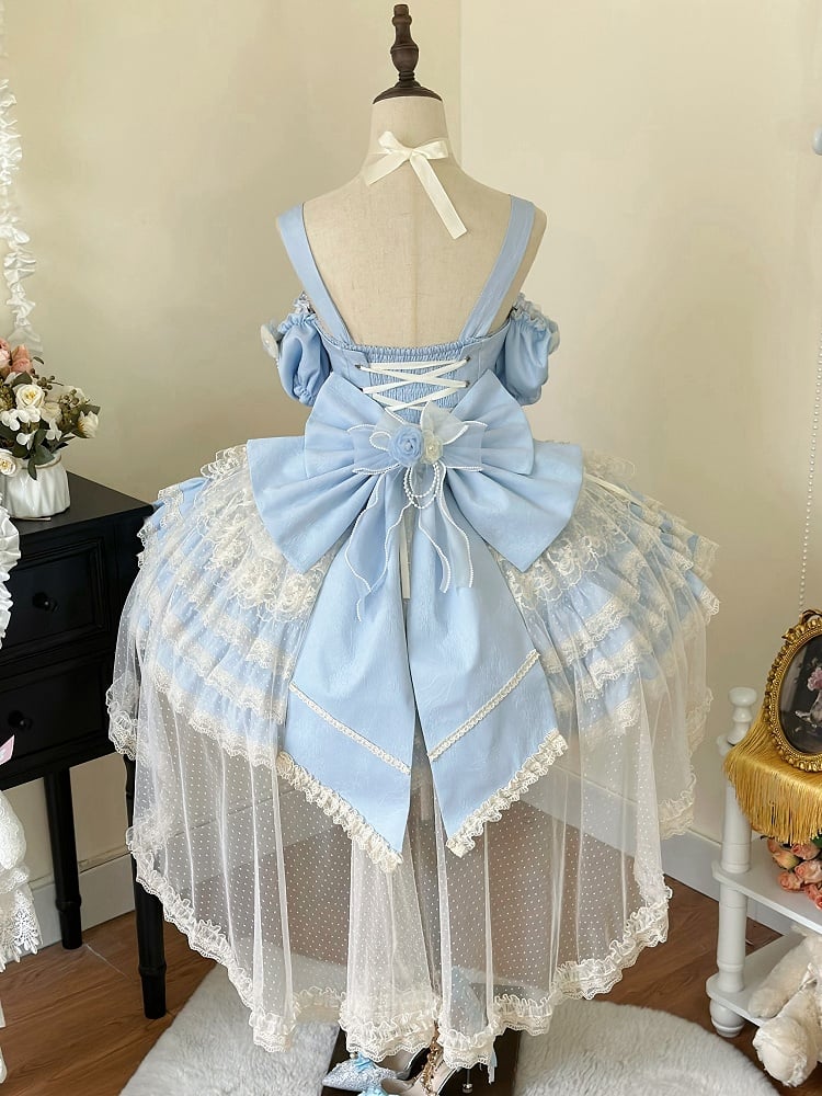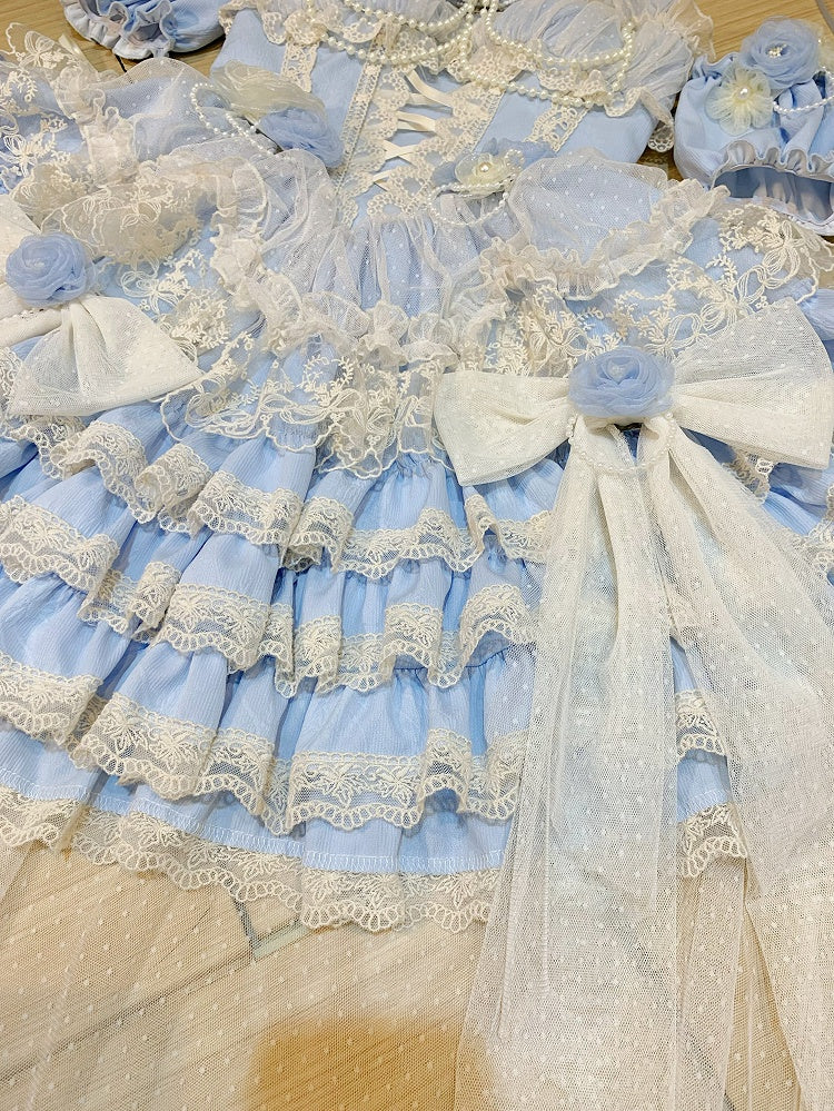 Blue Flower Fairy Princess Dress Hanayome Tiered Hem Lolita Jumper Skirt