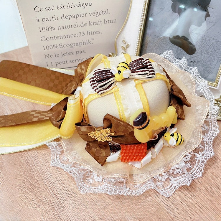Hat And Lace Lolita Plaid Sweet Trim Yellow Honey Design Bee Mini Bowknot Details