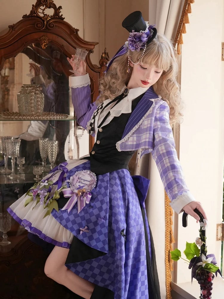 Black and White Old School Lolita Fashion Dress Bowknot Lolita JSK Set
