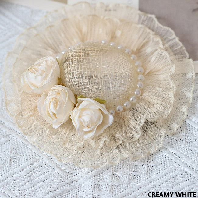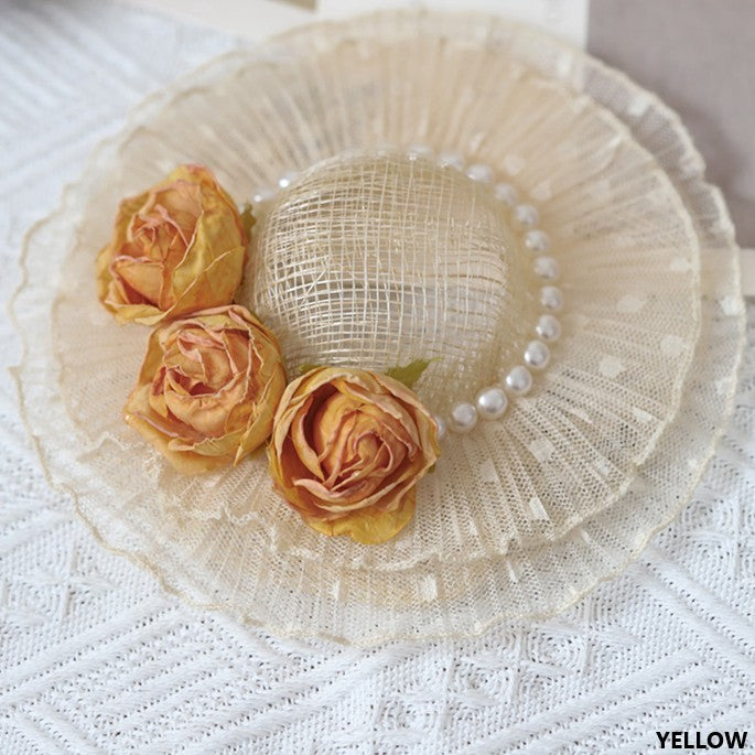 11 Color Options Lolita Floral Design Mini Hat With Bead Details