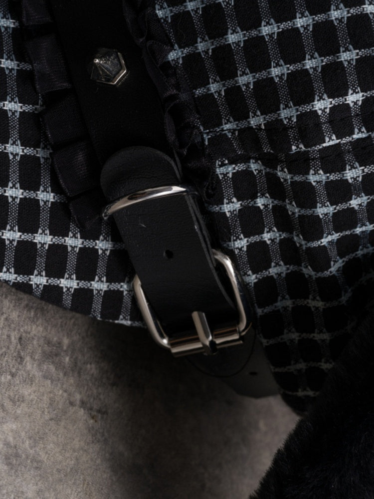 Black Gothic Studs Decorated Buckle Design Plush Puppy Ear Beret Hat