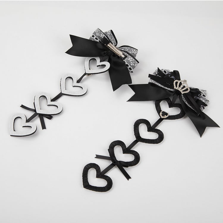 Jirai Kei 2-Color Heart Dangle Hair Clip Set (Pastel Pink & Black)
