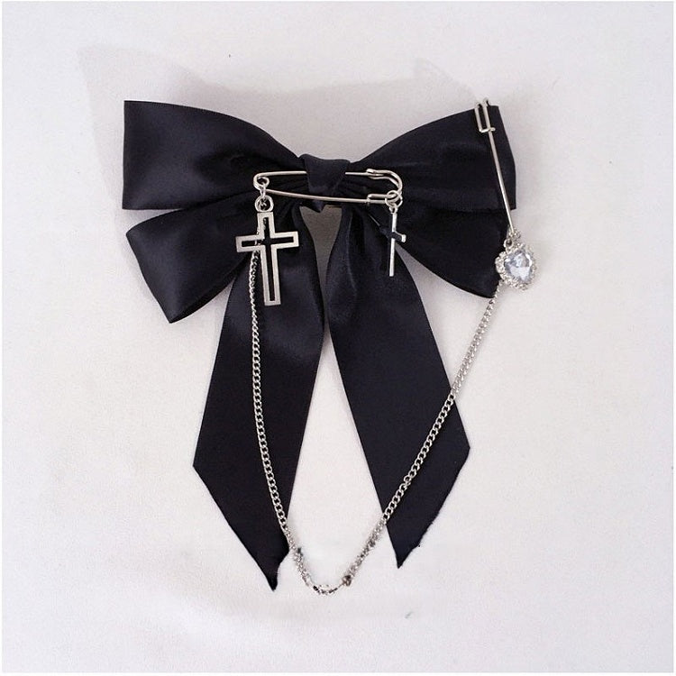 Black Gothic Bowknot Hairclip with Cross Pendant & Heart Rhinestone