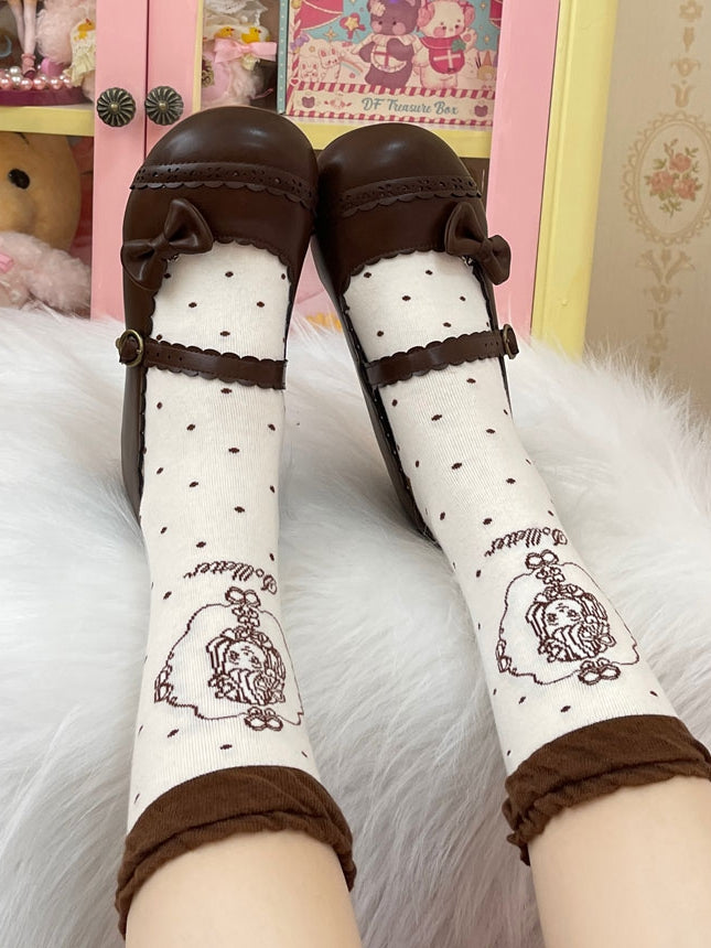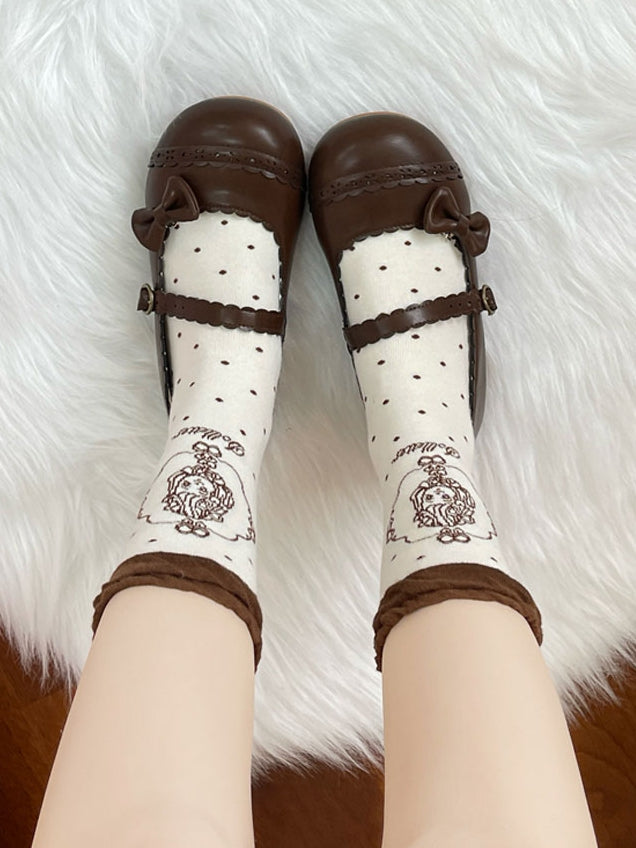 Hem Detachable Janes Details Scalloped with Chocolate Cutout Bows Mary Sweet Brown