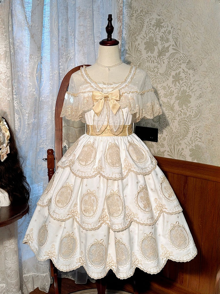 Black and White Old School Lolita Fashion Dress Bowknot Lolita JSK Set