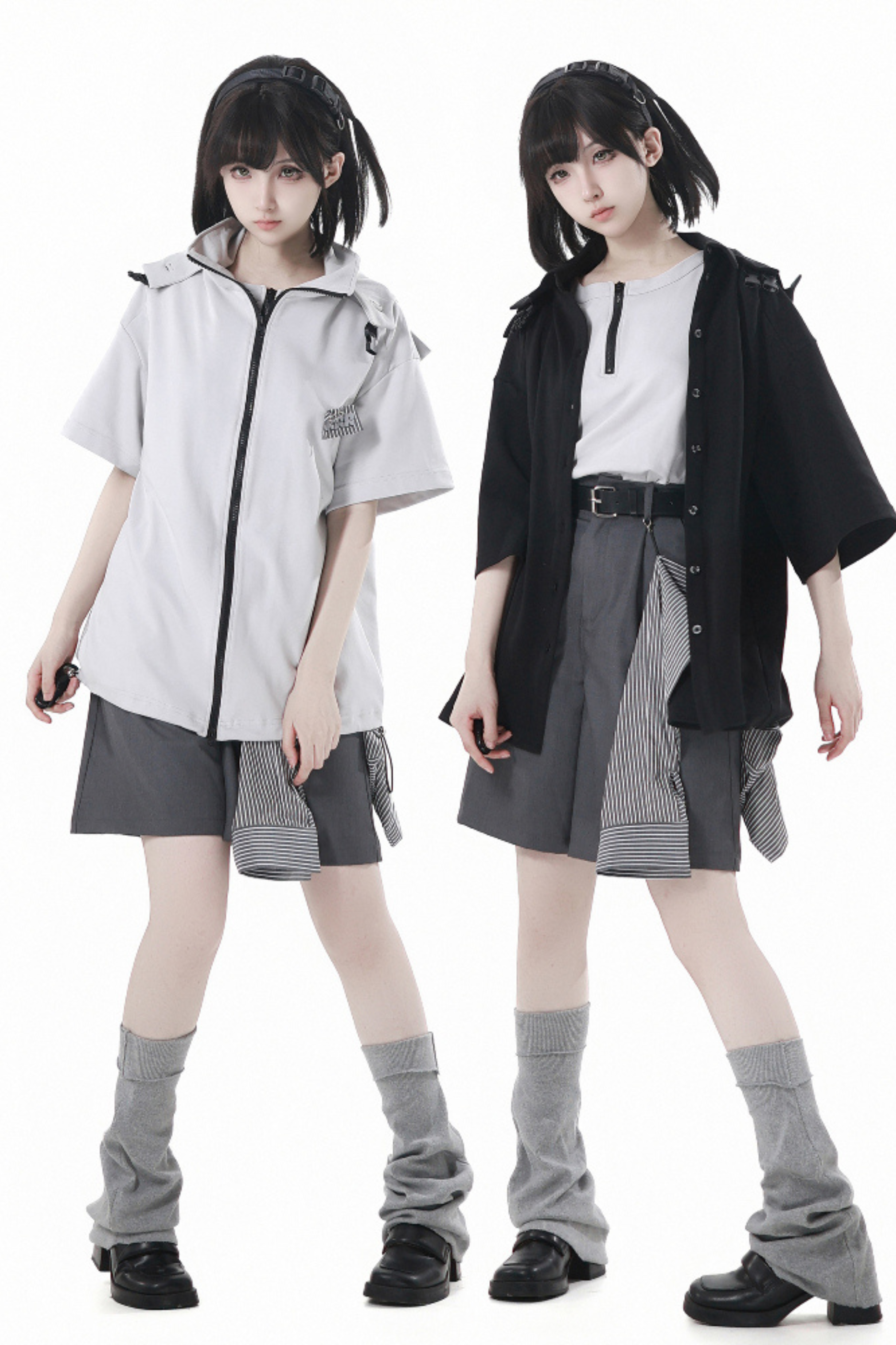 ❤Mode vest hooded jacket + sleeveless top + half pants❤