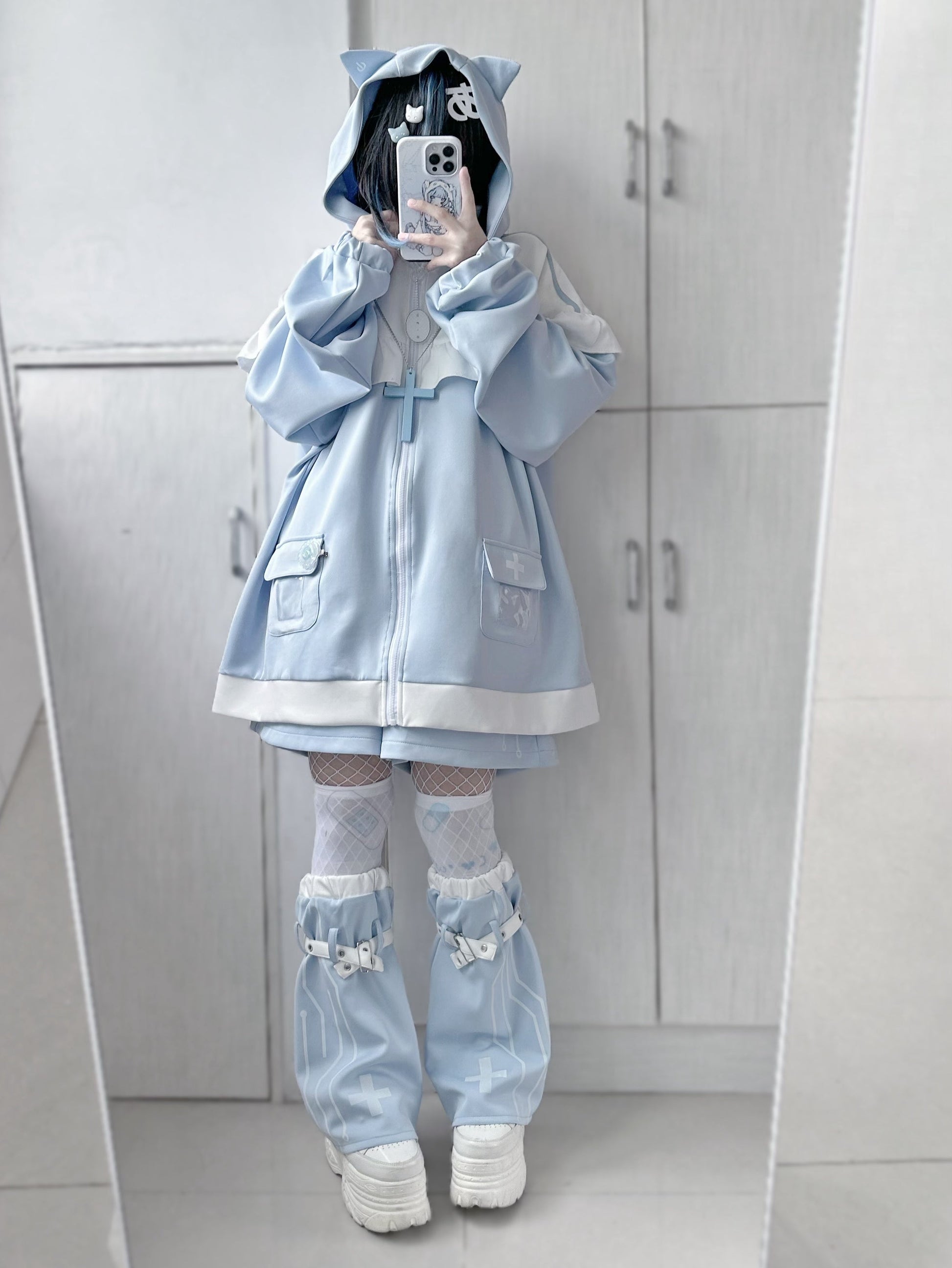 Hoodie Ear Three Piece Aqua Neighborhood Cat Loose Angel Set