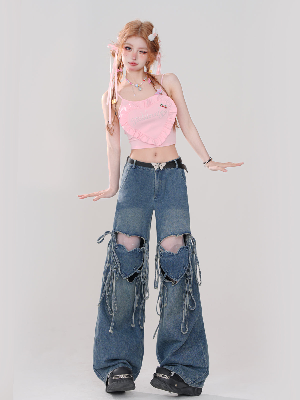 Hot Ripped Denim Rolled Loose Love Stripe