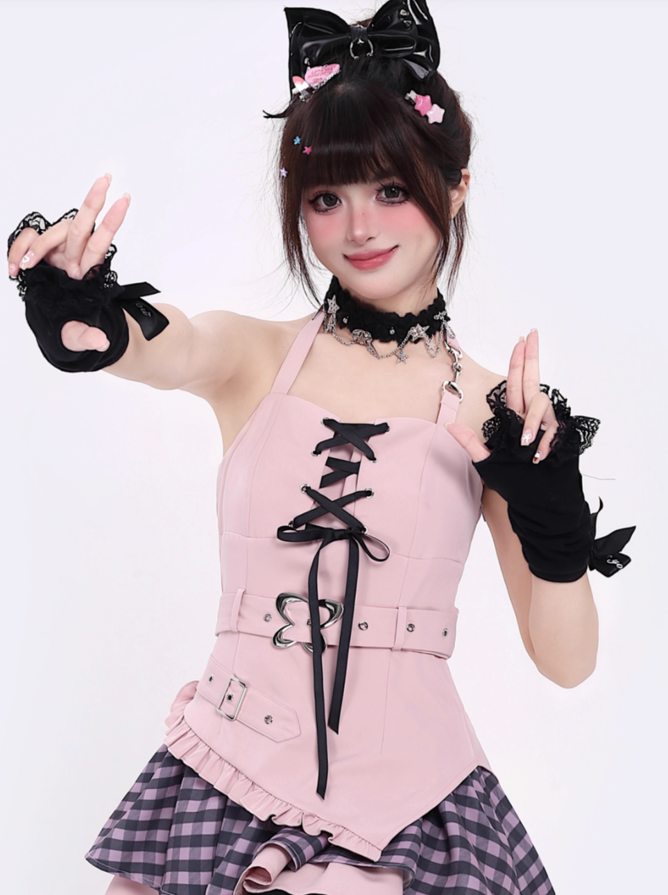 Idol Virtual Lace-Up Neck Top