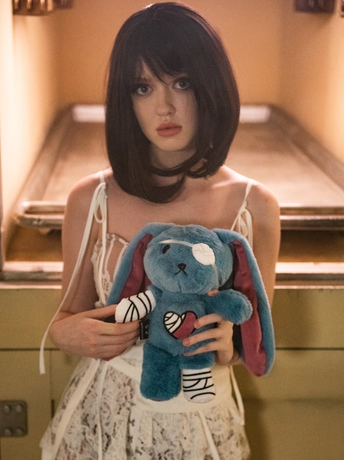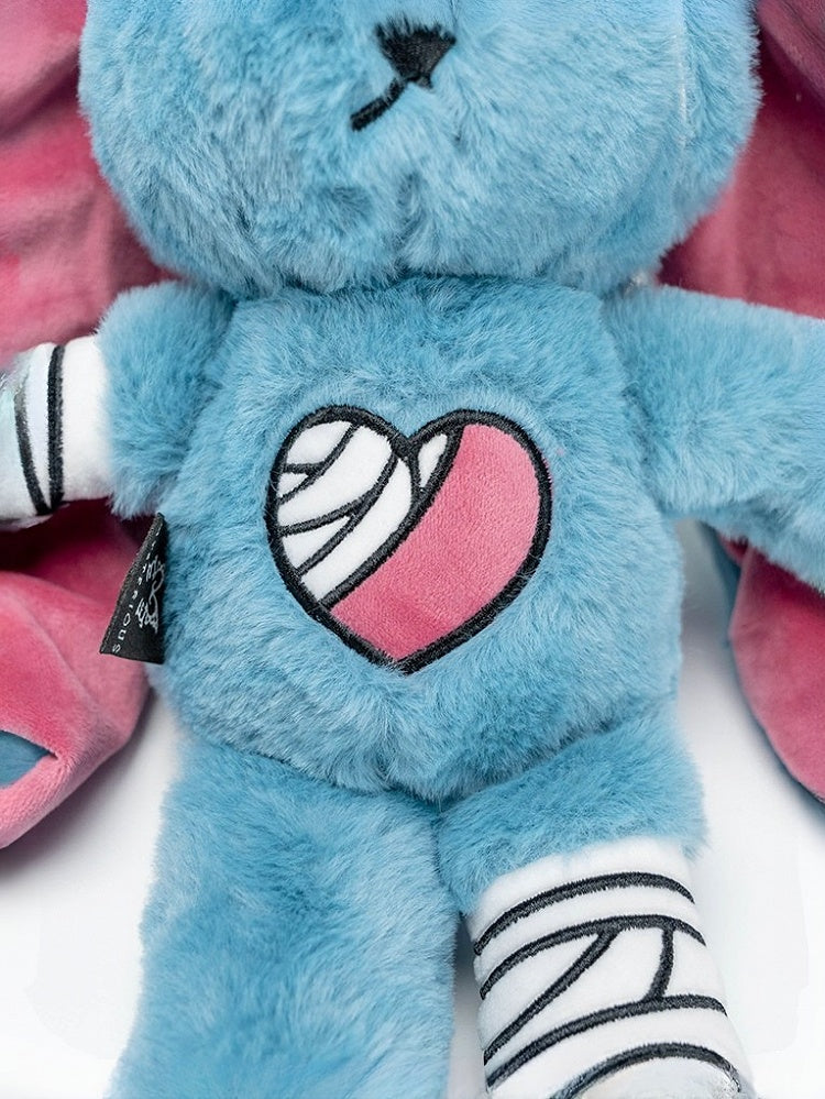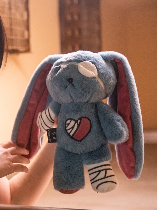 Guro Kawaii Peacock Blue Injured Bunny Plush with A Canvas Bag