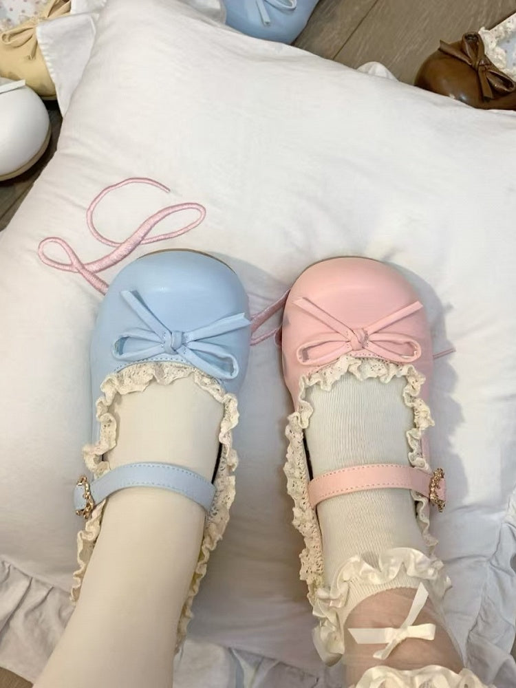 Pink & Blue Sweet Lolita Mary Jane Shoes with Decorative Bow & Heart-shaped Snap