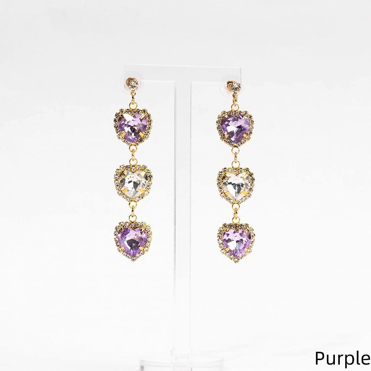 Jirai Kei Heart 5 Colors Earrings Rhinestone Triple