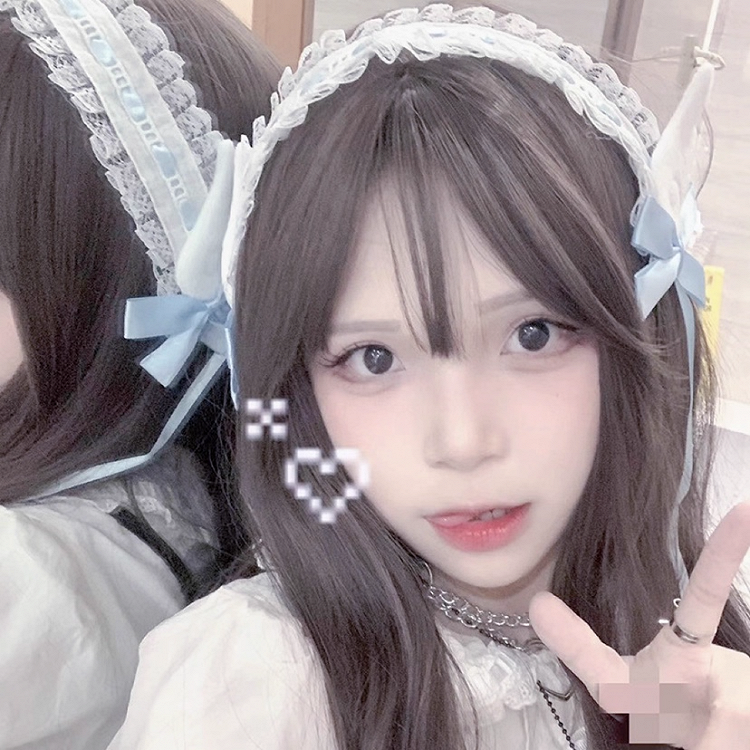 Jirai Kei Light Blue Bow Ruffled Lace Hairband with Plush Angel Wings