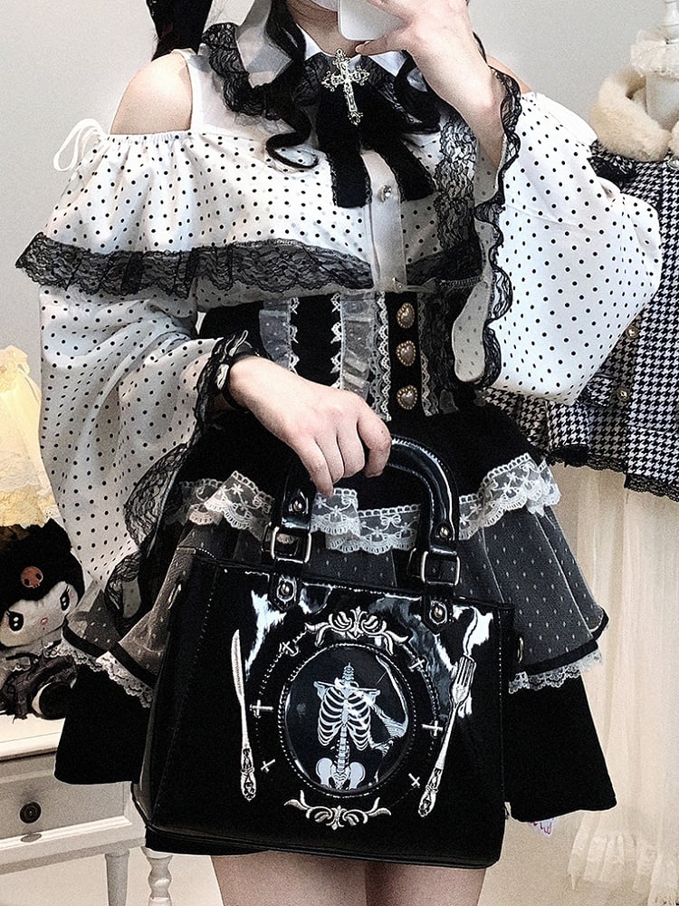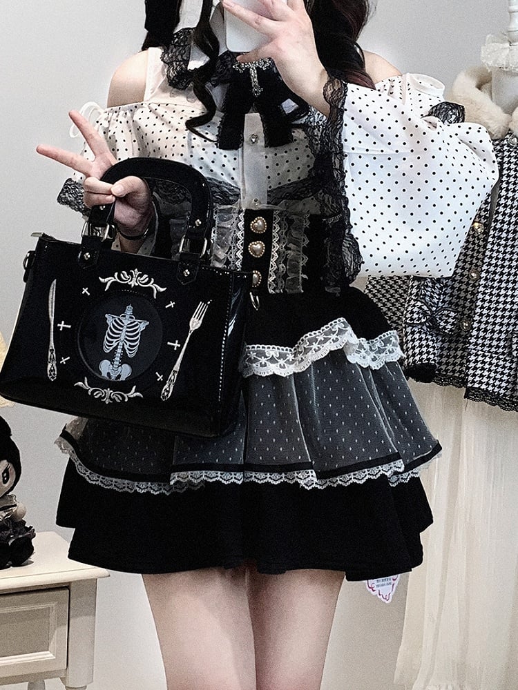 Jirai Sleeves Kei Polka-dot Bell / Blouse | White Pink