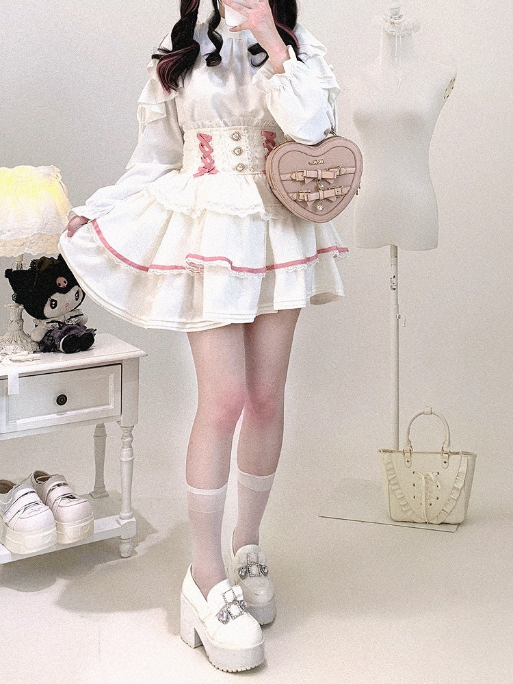 Sweet White Mary Jane Strawberry Chocolate Platforms Cake Lolita Shoes