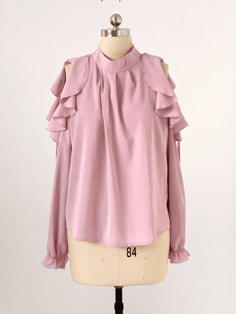 Kei Chiffon | Blouse Cut-Out Flounce Shoulder Seiso Style Jirai