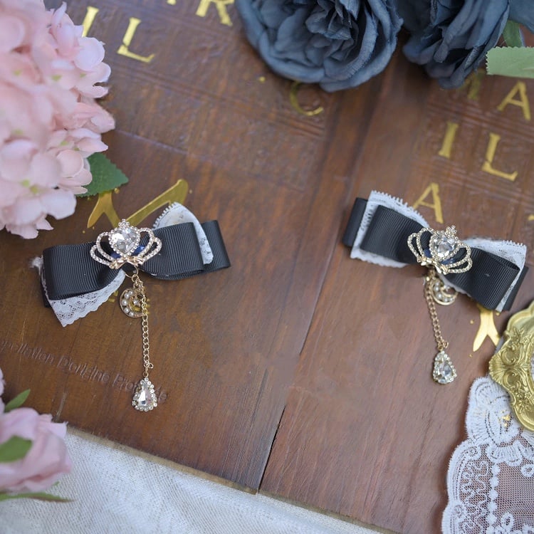 Kei Moon Jirai 6 Hairclips Bowknot Colors Crown Rhinestone with Teardrop Charm